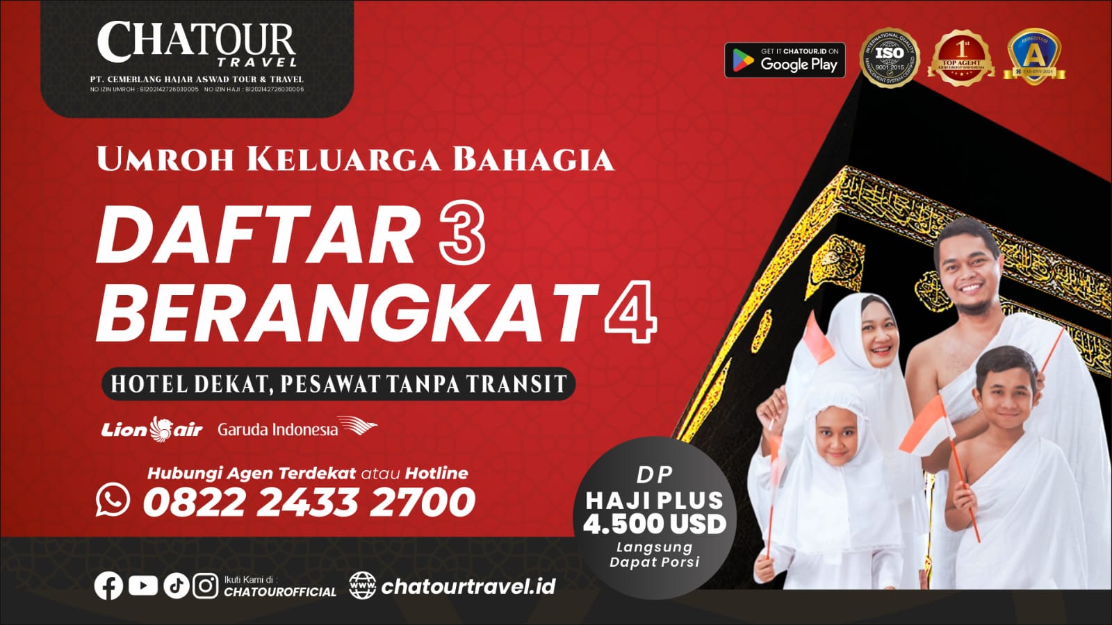 “Chatour Travel Umroh Keluarga Bahagia, Haji Bersama yang Tercinta,Bersama Chatour Travel, Pasti Berangkat.”