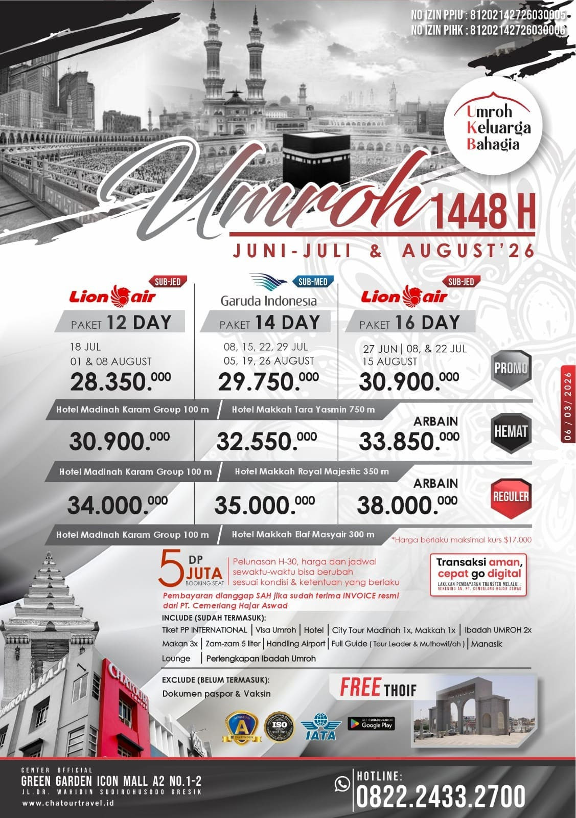 Paket yang ditawarkan Chatour Travel mencakup periode keberangkatan sepanjang Juni hingga Agustus 2026