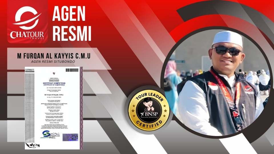 Situbondo, Chatour Travel – Di tengah tantangan industri perjalanan religi yang kian dinamis, aspek legalitas pendamping kini menjadi variabel penentu keamanan jamaah. Di Situbondo Chatour Travel menghadirkan sebuah ekosistem layanan umroh yang profesional, aman, dan paraktis dengan digitalisasi yang di syiarkan oleh agen resmi chatour travel yang sudah bersertifikat resmi BNSP sebagai pemandu ibadah umrah dan haji. Inisiatif ini dilakukan sebagai bentuk sikap terhadap perlindungan jamaah di wilayah Situbondo dari biro perjalanan yang tidak bertanggung jawab.