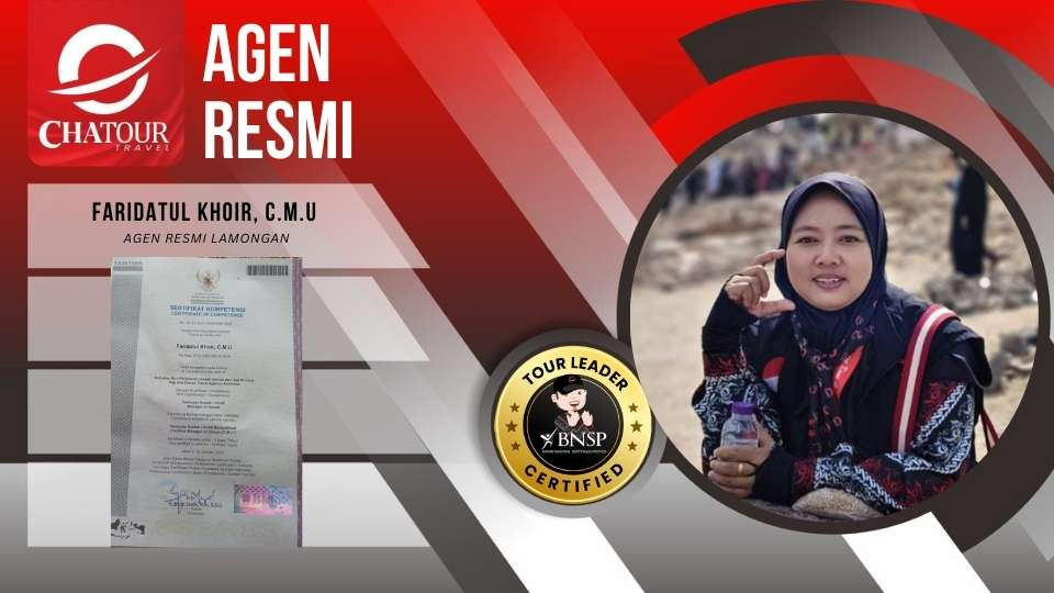 Lamongan, Chatour Travel – Kabar baik bagi masyarakat Kabupaten Lamongan yang sedang merencanakan perjalanan ibadah ke Tanah Suci. Guna memastikan keamanan dan kualitas layanan, Chatour Travel kini memperkuat kehadirannya di "Kota Soto" melalui agen resmi yang dikelola oleh tenaga ahli profesional. Seluruh pengelola ini telah mengantongi sertifikasi kompetensi nasional dari Badan Nasional Sertifikasi Profesi (BNSP) sebagai Tour Leader. Langkah ini diambil untuk memutus keraguan masyarakat terhadap legalitas travel umrah, dengan menghadirkan pendampingan langsung dari praktisi yang berpengalaman.